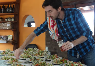 La Hostería Vegetariana consta de 6 Eco-Aparts equipados para 2 y 3 personas, todos con una espectacular vista panorámica del valle y las sierras. Cada unidad cuenta con un dormitorio para dos/tres personas, baño completo equipado con sanitarios Ferrum y grifería FV, kitchenette con espacio para comer y un pintoresco balcón cubierto, con mesa y bancos, desde donde se observa todo el esplendor de unos atardeceres inigualables. Cochera semicubierta, incluida en el precio.